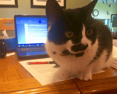 I had also thought it was possible I wouldn’t break at all. But I did break. And it wasn’t from the weight of a deadline. It was an 8-pound cat.
